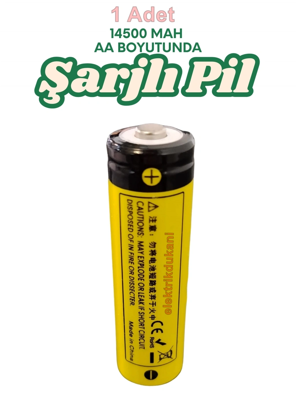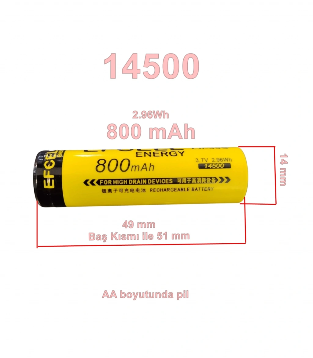 Tip: 14500 Li-ion Şarj Edilebilir Pil.