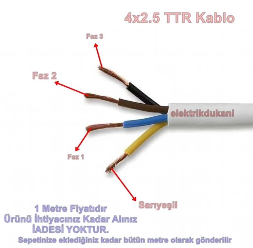 Üründe 4 adet kablo bulunur içerisinde her bir kablo 2.5 mm kalınlığındadır