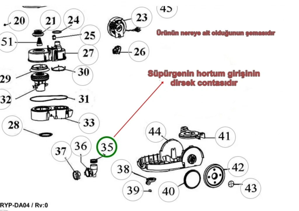 Şemasında hangi yere ait olduğunu belirten parçanın yeri gösterilmiştir.