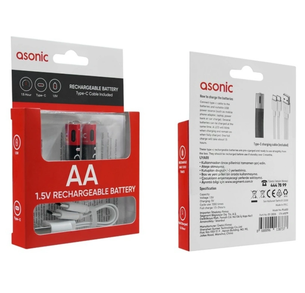 Asonic AA Kalem Şarjlı Pil