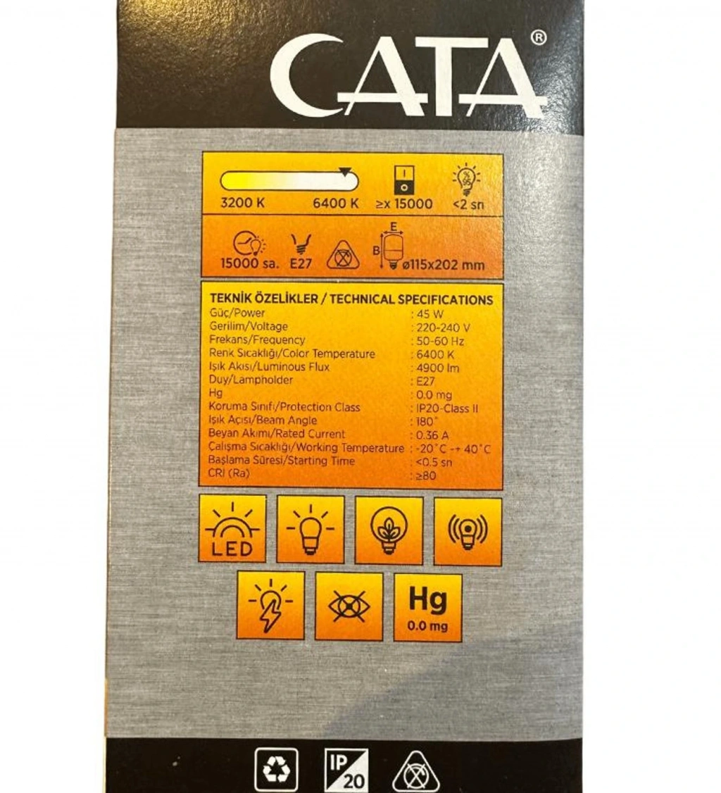 CATA 45W E-27 Torch Led Ampul Bulb 6400K Beyaz Işık 220v 4900lm, geniş ve ışığı az olan alanlar için mükemmel bir tercihtir. Ürün, 180 derece ışık açısı ile odanızı homojen bir şekilde aydınlatarak güçlü bir görünüm sağlar. Ayrıca sadece 45 W güç harcayarak 200 W değerinde bir ışık sunar, bu da enerji tasarrufu sağlar.
