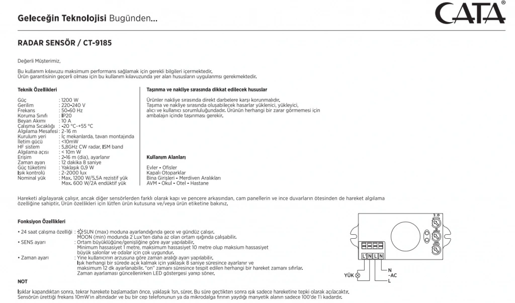 Zaman ayarı: Yine kullanıcının arzusuna göre zaman aralığı ayarlanabilir Işık herhangi bir süre açık kalmak için ayarlanır maksimum 12dk ayarlanabilir on zamanı süresince açık kalan hareket zamanı sıfırlar.