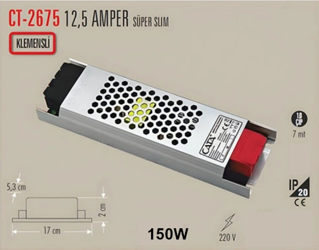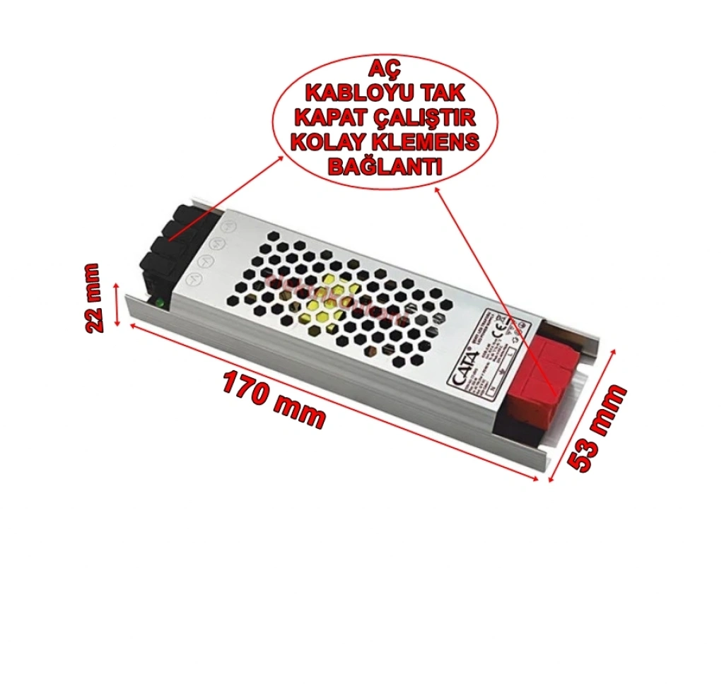 Cata 12,5 Amper İç Mekan Fansız Slim Şerit Led Trafo Klemensli CT-2675