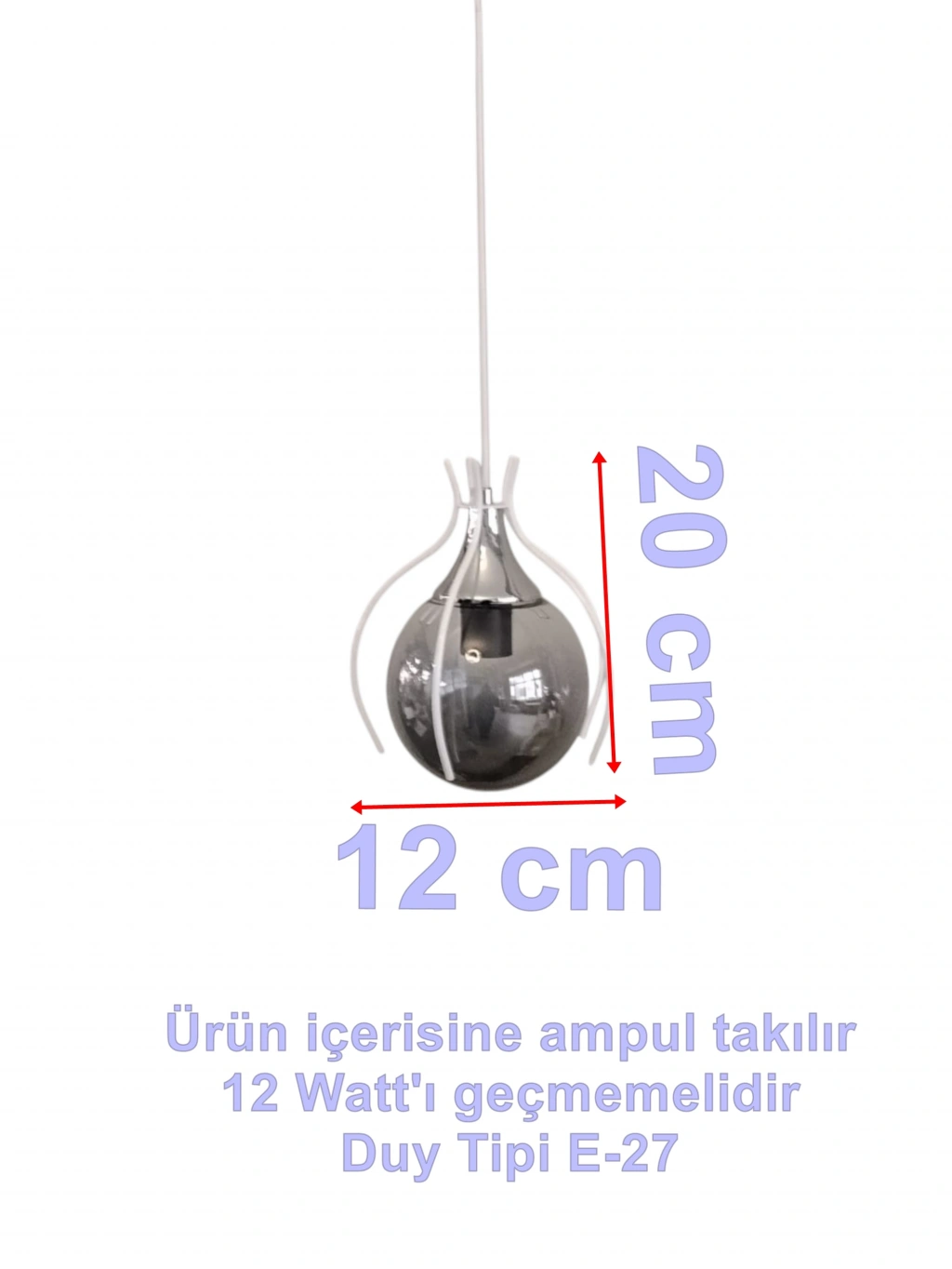İçerisinde ki duy yuvasına E-27 ampul takarak Led veya ısınan halojen led ampul 12 wattı geçmemelidir