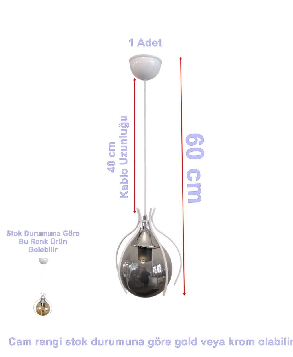 Sarı Renk Cam veya Gümüş(Krom) Renk Karışık Gönderilir
