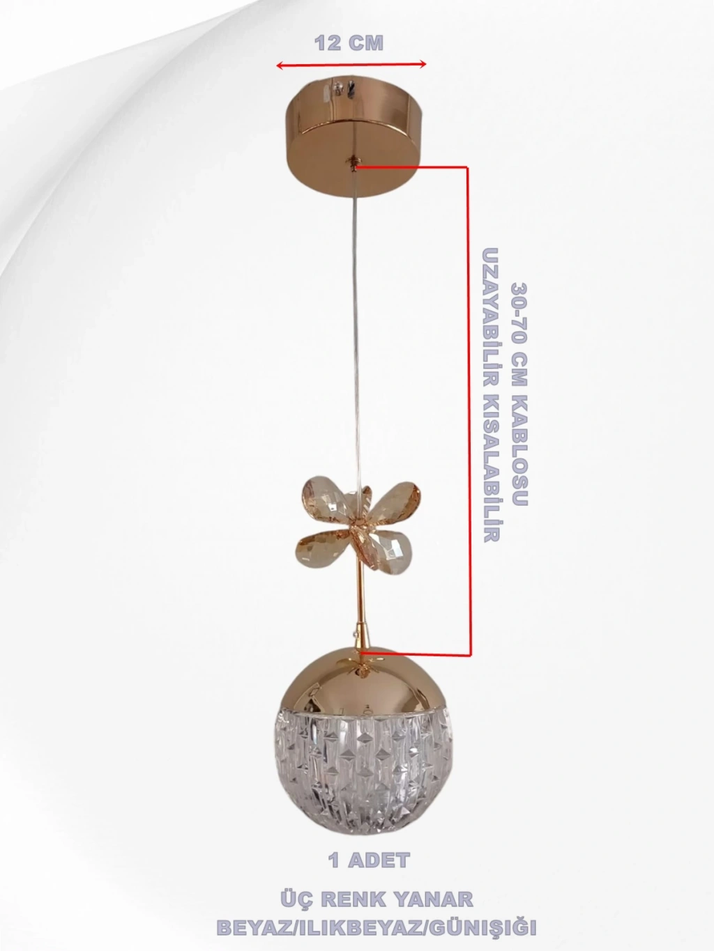 DMR Tekli Taşlı Top Sarkıt Led Avize, şıklığı ve modern tasarımıyla evinizin aydınlatma ihtiyacını karşılamak için ideal bir seçenektir.