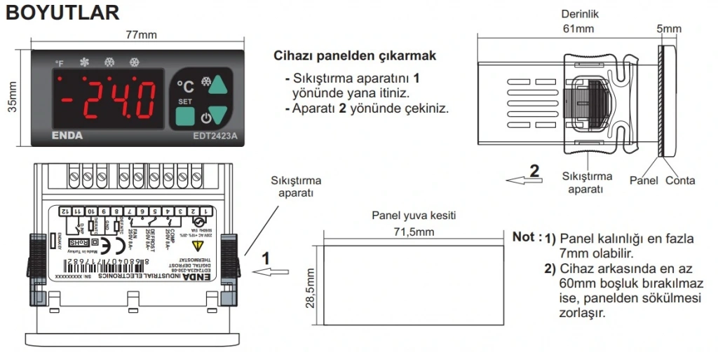 rutubetten, titreşimden ve kirlilikten korunmalıdır. Çalışma sıcaklığına dikkat edilmelidir. Montaj