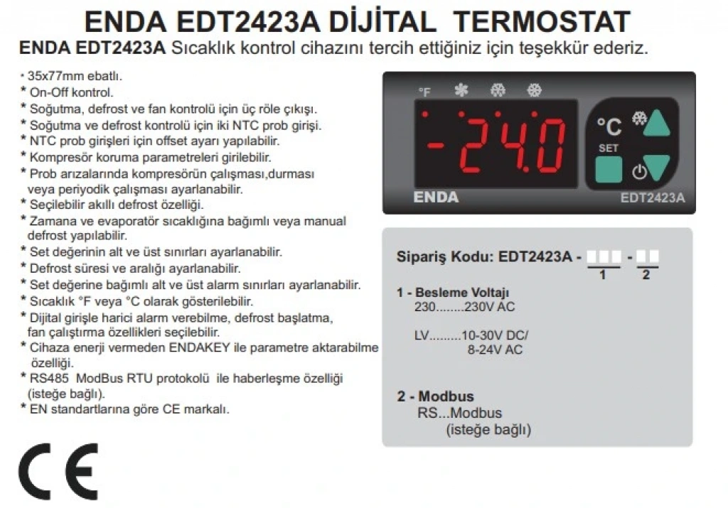 -Soğutma, defrost ve fan kontrolü için üç röle çıkışı.