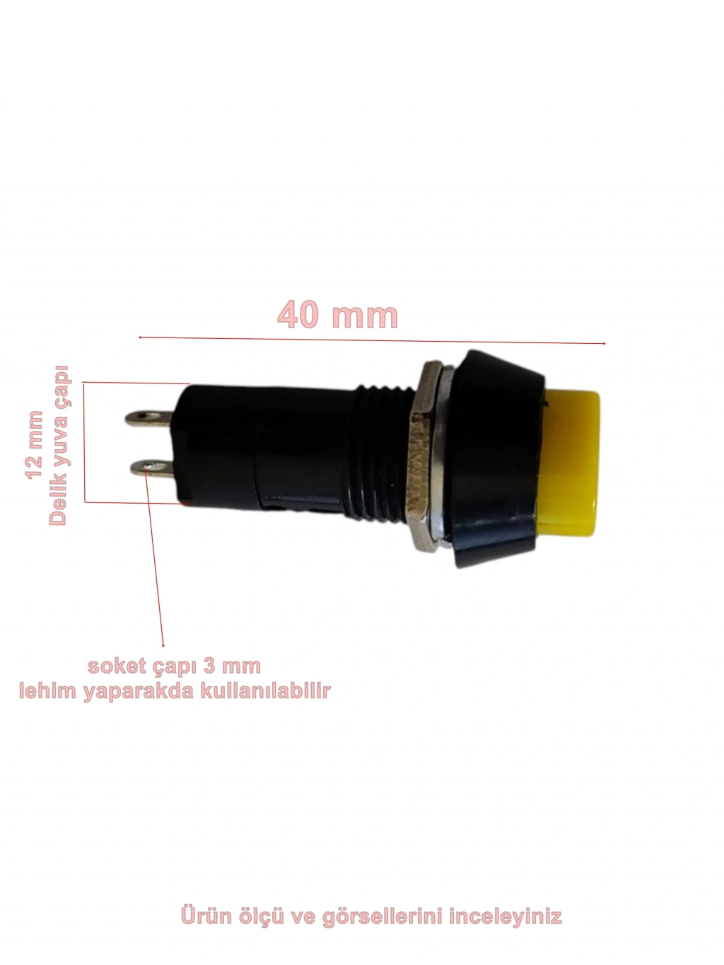 ENDER 12mm SARI Yuvarlak Kalıcı Çıt Çıt Buton Anahtar