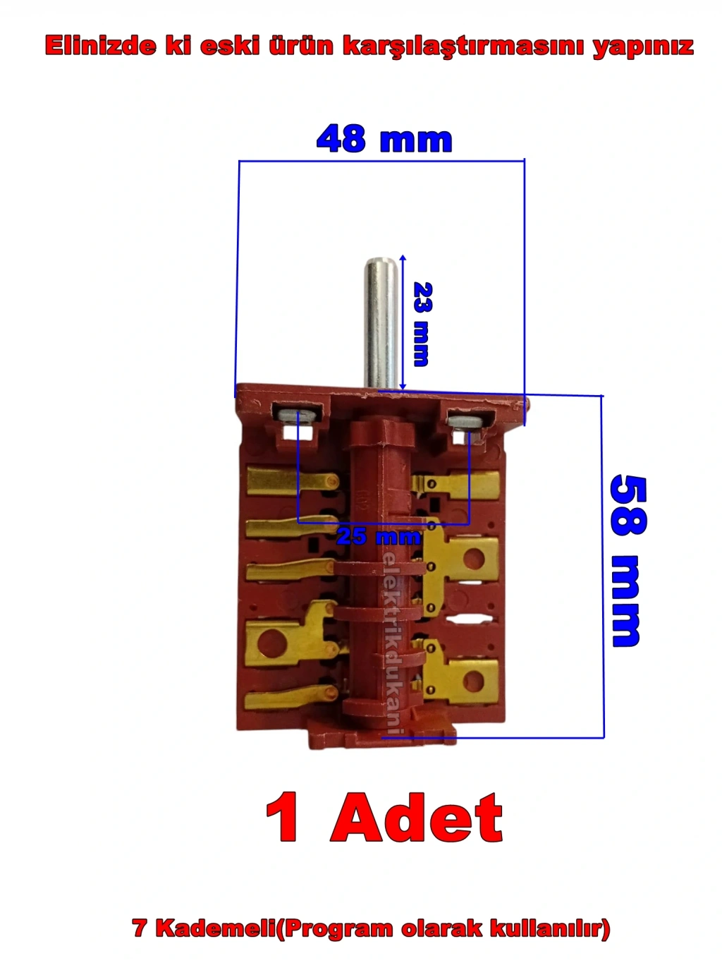 7 Kontak Dikkat !!! Bu tip ürünler üniversal üründür eski çıkan parça ile bu ürünü karşılaştırınız kontak yerleri soket ayakları ve ölçülerine ve mil boyuna bakınız.