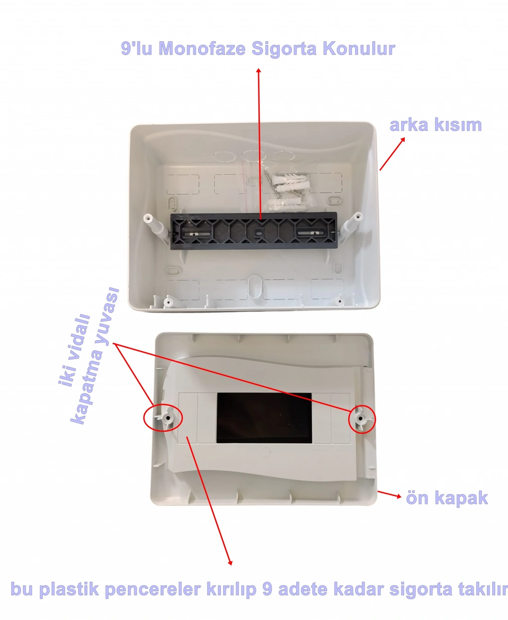 Işıldar Sıva Üstü Sigorta Kutusu 1 Adet Monofaze sigorta olarak içerisine 9 adet sigorta konulabilir