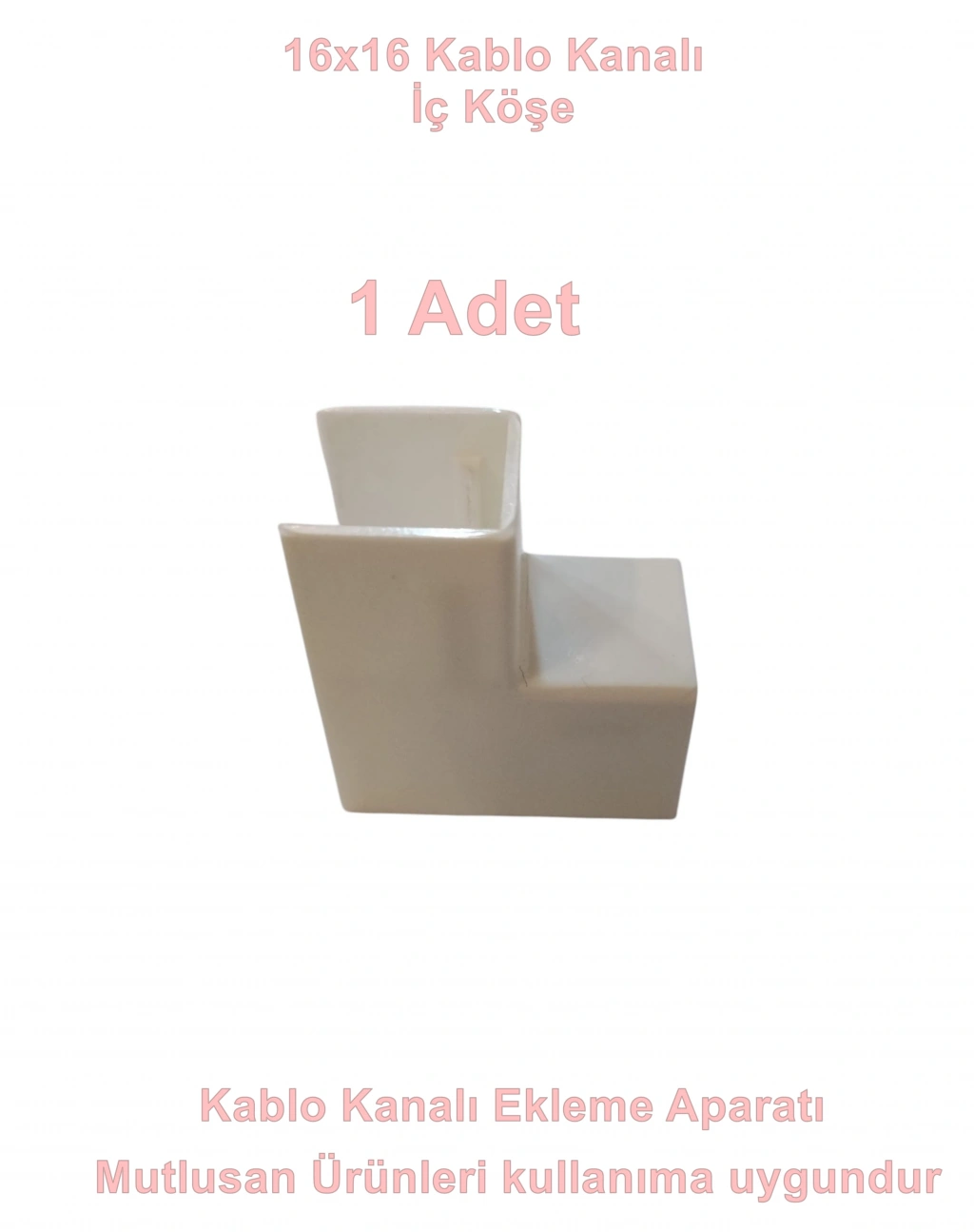 Ürün kablo kanalı olan 16x16 iki adet kablo kanalını birbirine eklemek için kullanılır L tipi şeklinde eklemeye yardımcı olur dönüşleri iç kısımdan takarak yapmış olursunuz.