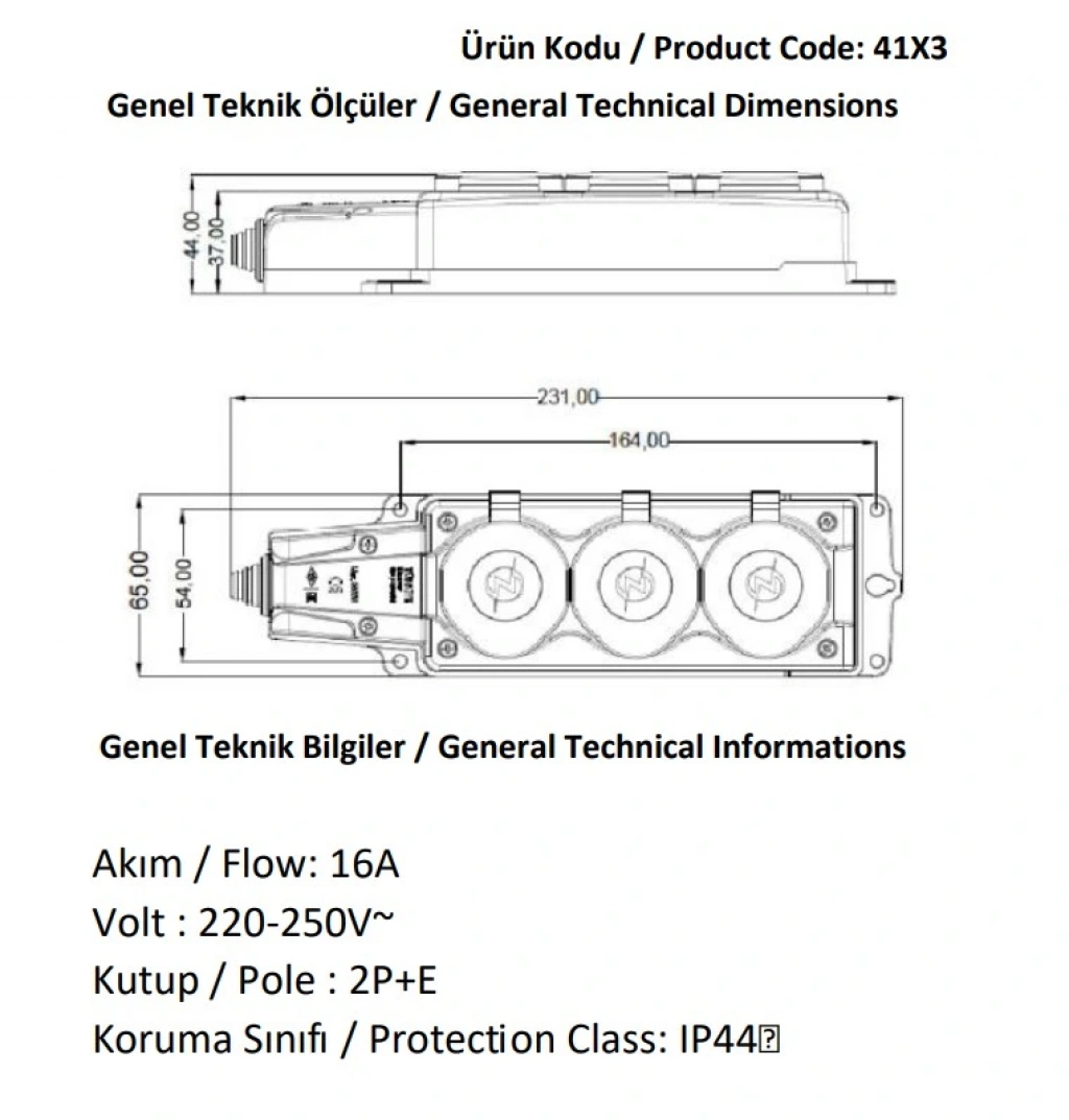 16 Amper akım kapasitesi ve 220-250 Volt voltaj aralığı ile güçlü elektrikli cihazlar için güvenli bir bağlantı sağlar.