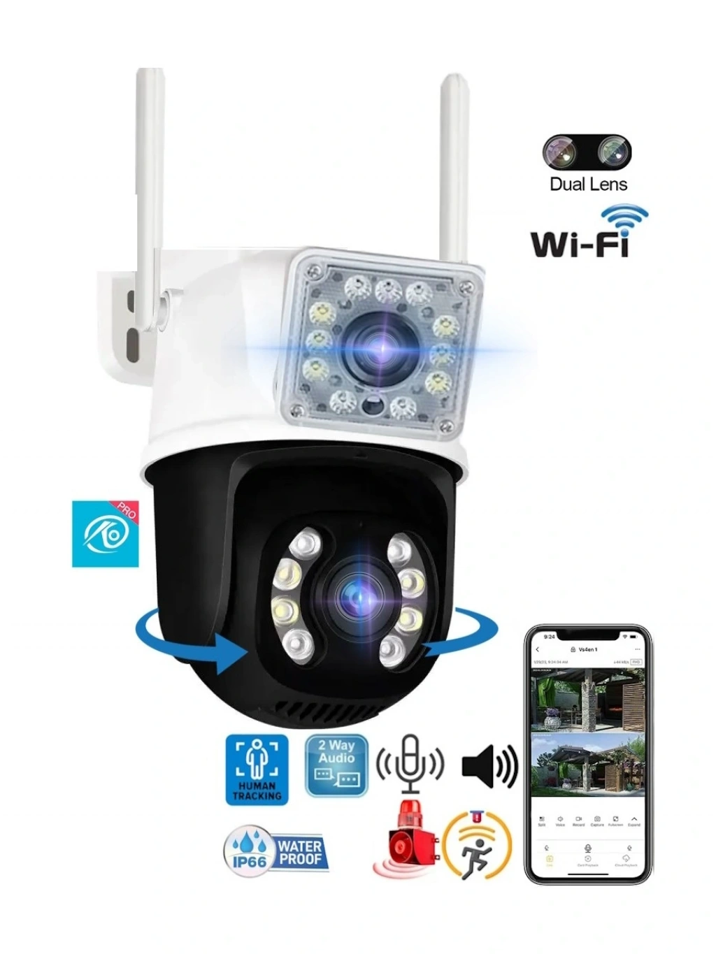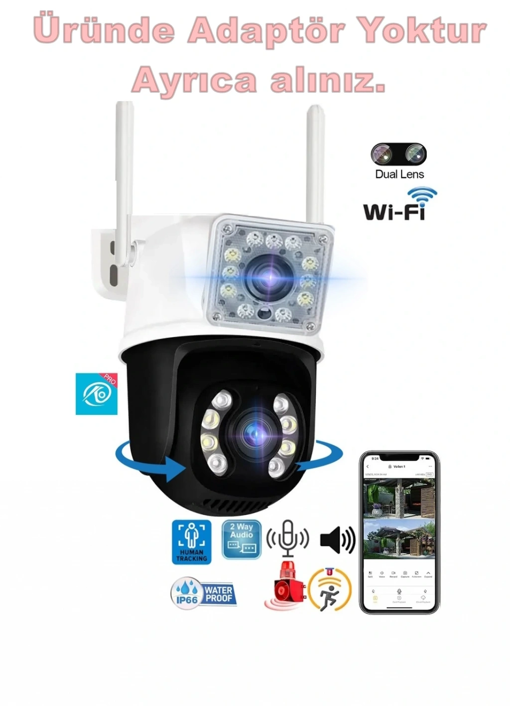 O-KAM Pro 3012 Wi-Fi PTZ İki Kameralı 360° İç ve Dış Mekan Akıllı Kamera 3MP - 5MP IP66 (1 Hareketli 1 Sabit Wifi li) ile artık güvenliğiniz kontrol altında!