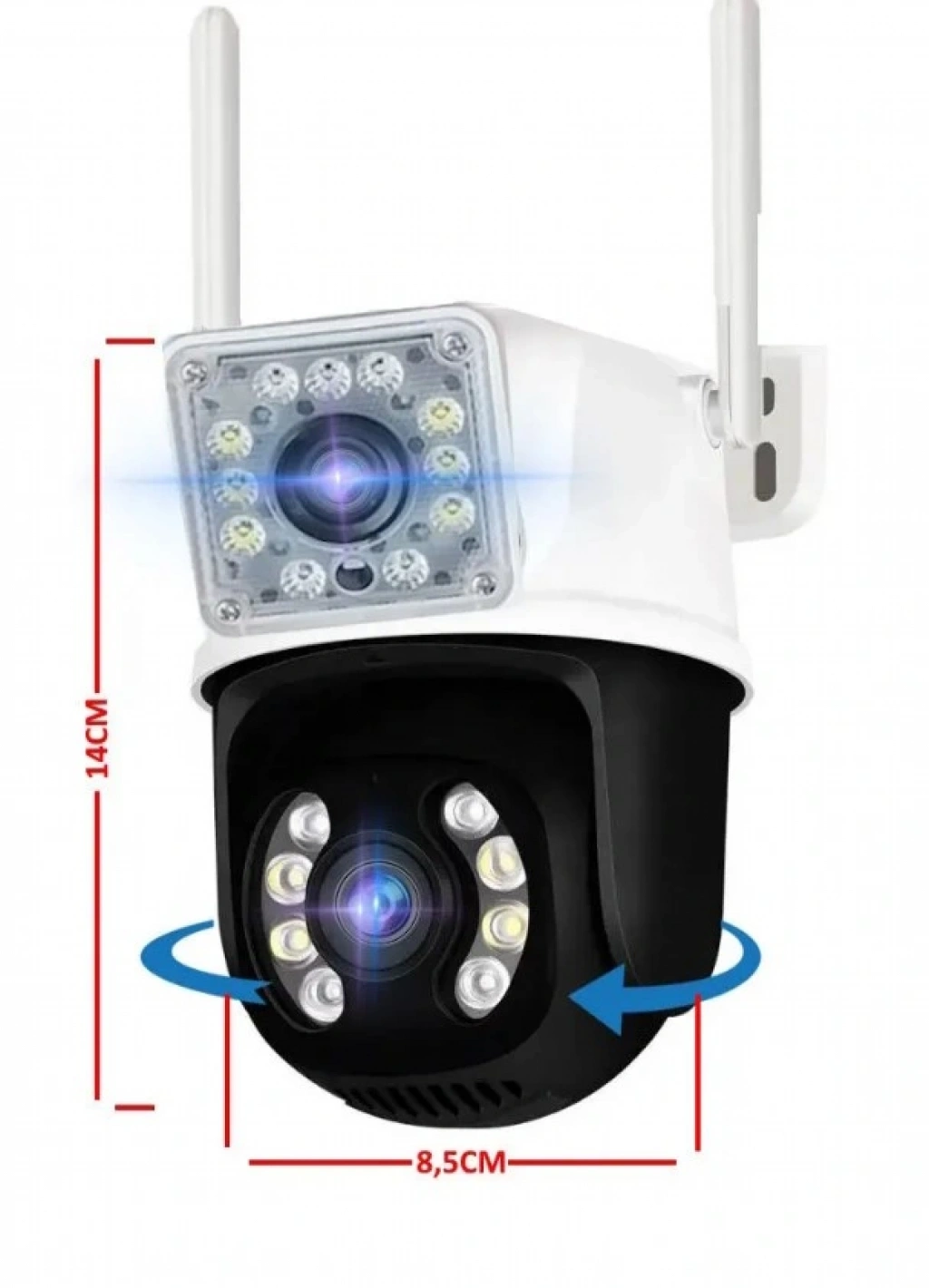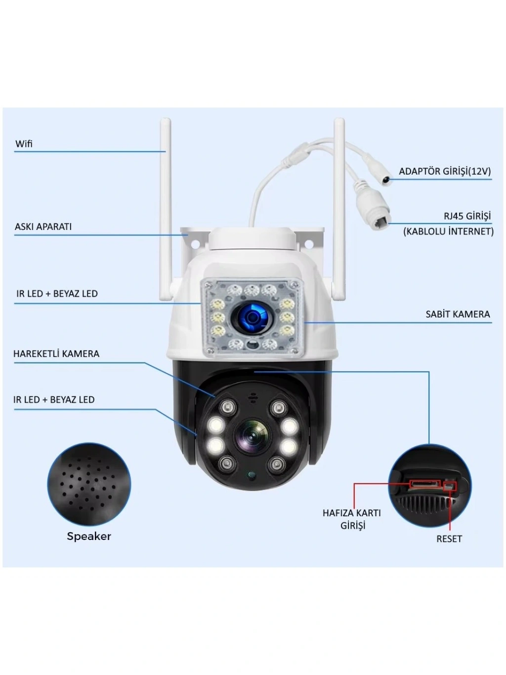 Üründe bulunan 1 hareketli ve 1 sabit kamera ile daha fazla esneklik ve kontrol sağlanmıştır.