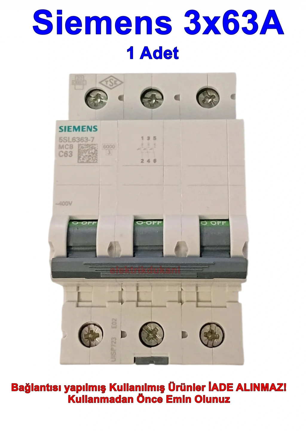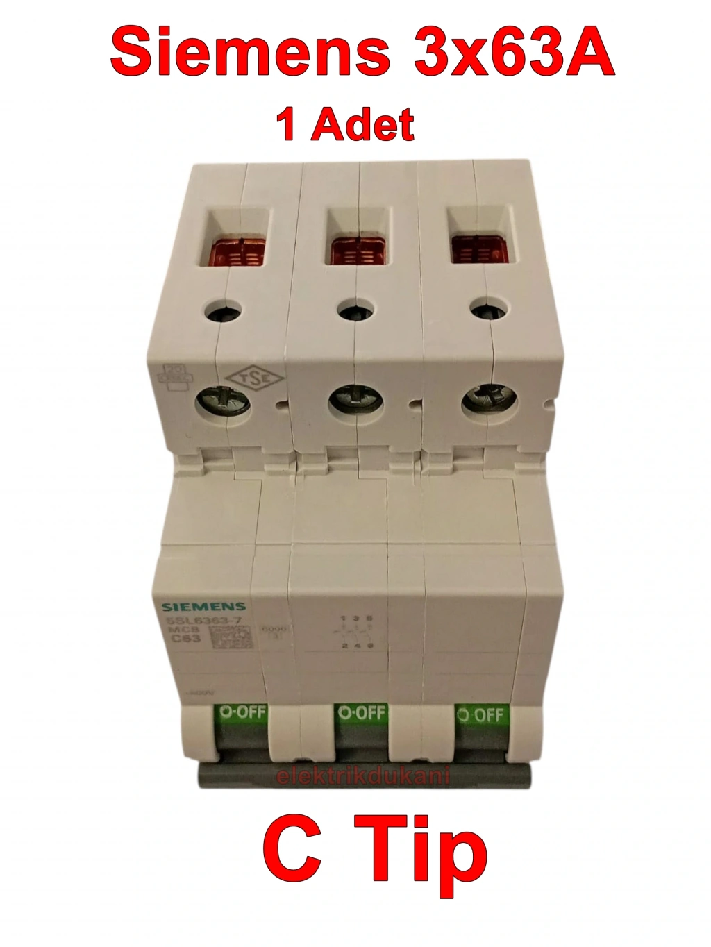 Siemens 5SL6363-7 C tip bir otomatik sigortadır. C tip bir otomatik sigortadır. C tipi otomatik sigortalar genellikle konutlarda ki bazı cihazların korunmasında hem de endüstriyel alanlarda kullanılır. Ayrıca endüktif yerlerde, motor, trafo ve çok sayıda floresan lamba yüklerin korunmasın kullanılır.