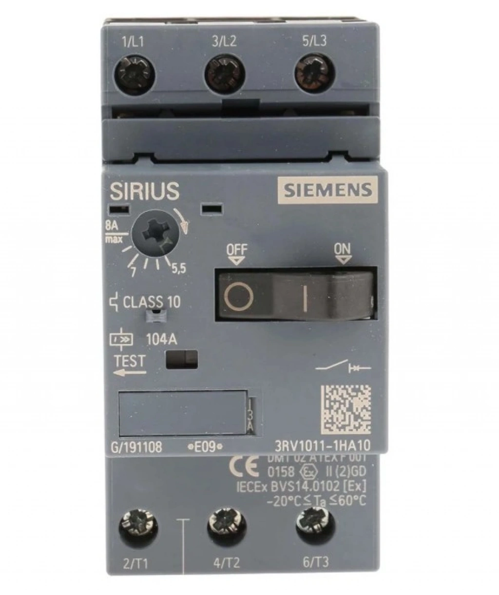 3RV10 akım sınırlayıcı motor yol verici koruyucu, indüksiyon motorlarını anahtarlamak ve korumak için kullanıldığından, genellikle motor koruma şalteri olarak bilinir. Siemens 3RV Manuel Motor Yol Vericiler, yük besleyiciler için optimize edilmiştir. Motor devre kesiciler kompakttır ve uzun vadeli kararlılık sunar.