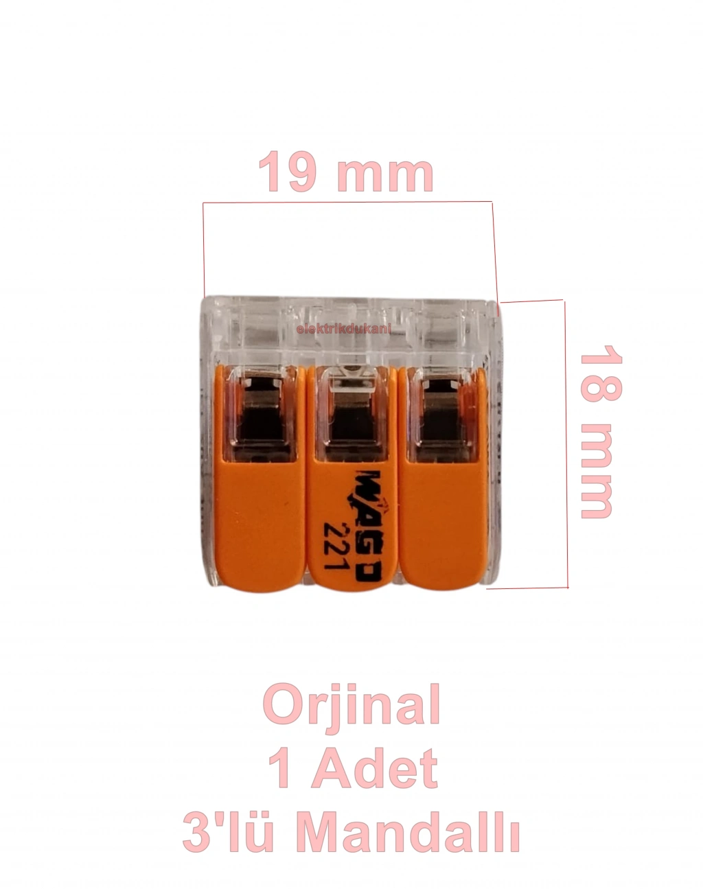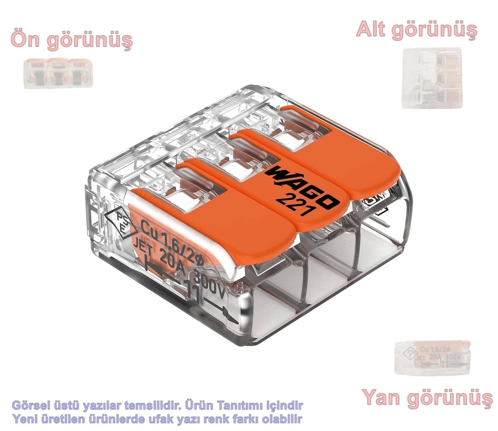 Üründe üç giriş mevcuttur. Üç adet kabloyu birbirine bağlamak için takılır.