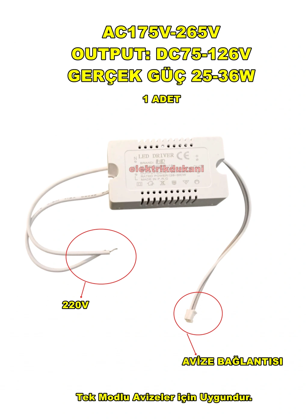 Ürünün trafosu elinizdeki ile aynı ise güç volt ve watt değerleri sipariş veriniz kusur olmayan ürünlerde kargo ücreti alıcıya aittir Yanlış bağlantı yapılıp patlayan yanan ürünlerde iade kabul edilmez.